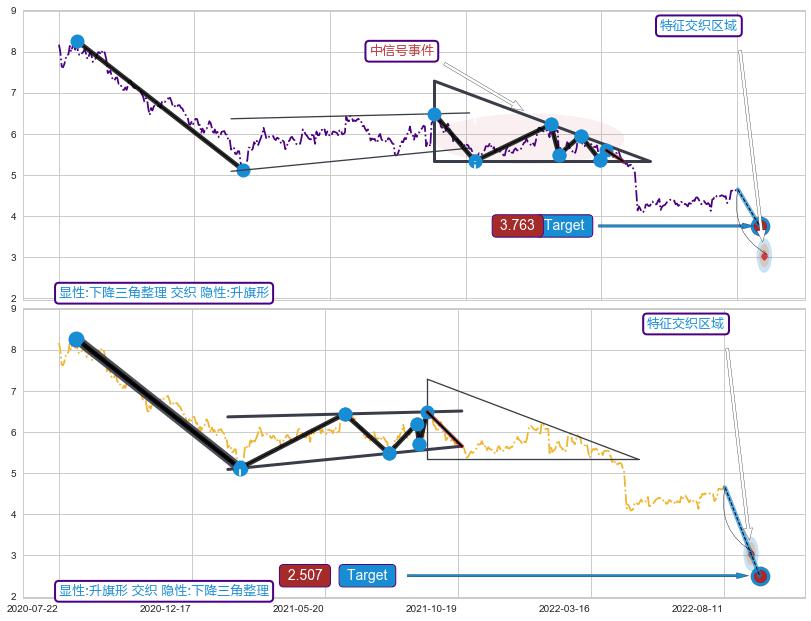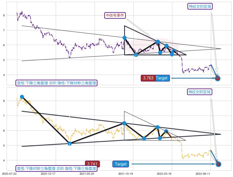 ➣ 【已确认突破】下降三角形整理 起点:2021-09-07,突破点:2022-04-11,形态共140交易日