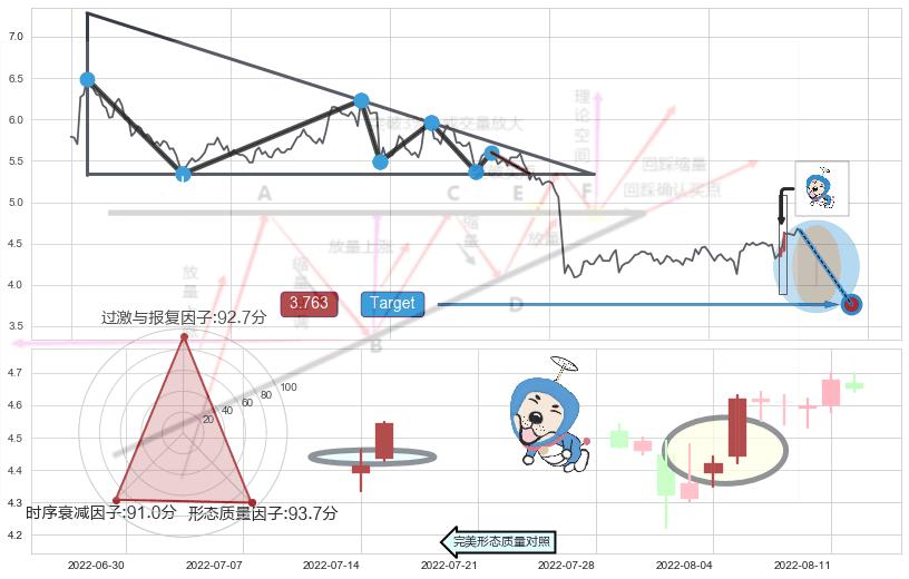 ♘ 阻力价格位6.28,可信任强度86.68%,距离最后交易2022-08-12形成的收盘价格4.65相差 +35.08%