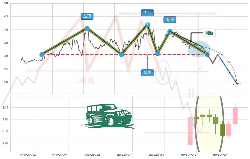 ♘ 阻力价格位3.962,可信任强度77.83%,距离最后交易2022-08-12形成的收盘价格3.350相差 +18.26%