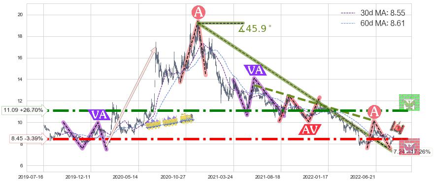 ♞ 30日均线:8.55,60日均线:8.61→ 快线<慢线