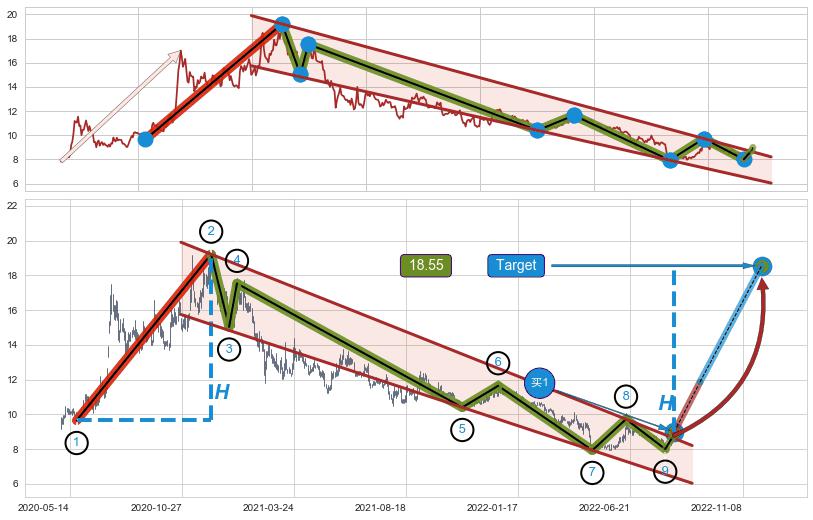 ➣ 最小中继整理涨幅→𝐇: 9.56 (𝐇旗杆的长度:旗杆起点→顶点)
