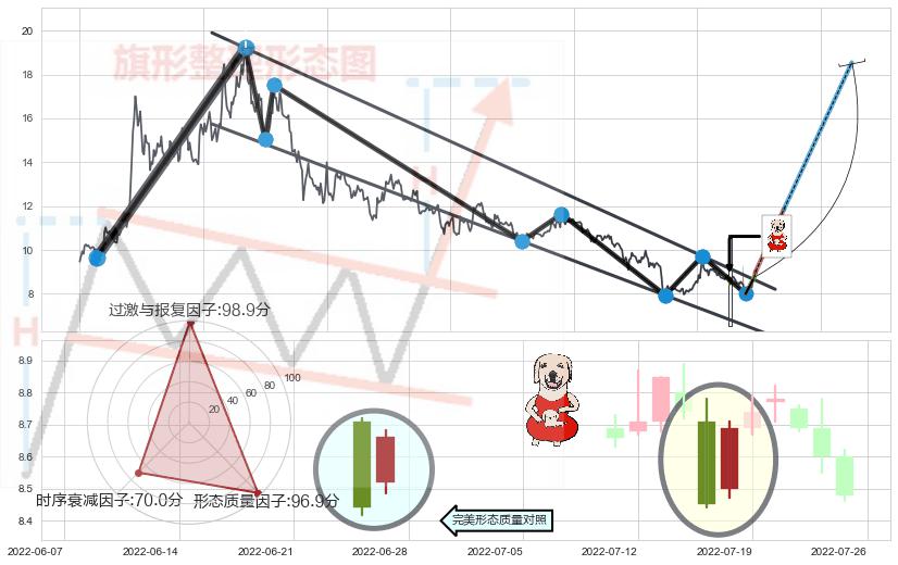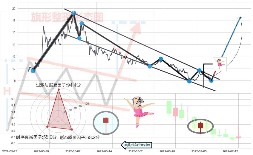 ➣ 【未确认突破,预测即将形成突破】降⚑旗形起点:2020-05-22, 预测突破点:2022-08-15,形态共534交易日