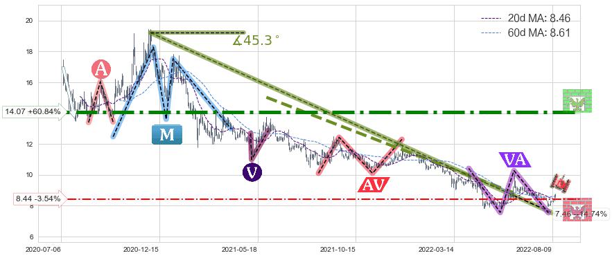 ♘ 支撑价格位8.44,可信任强度54.70%,距离最后交易2022-08-12形成的收盘价格8.75相差 -3.54%