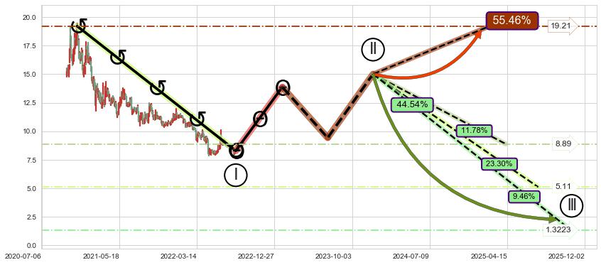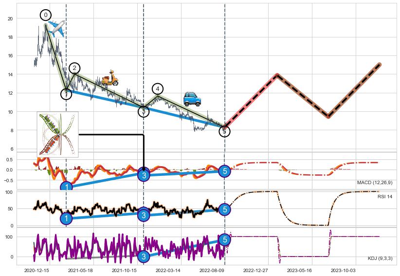 ➣ 波浪理论:猜想止跌 → 上涨 →【拐点】浪5已完成 → 大趋势均值回复