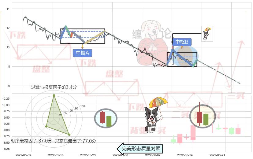 ➣ 看跌(高位倒锤头)流星线 + 缠论中枢点破位中枢B支撑下拉信号叠加后【目标达成率】中等,【看空】信号叠加【存续影响中等】