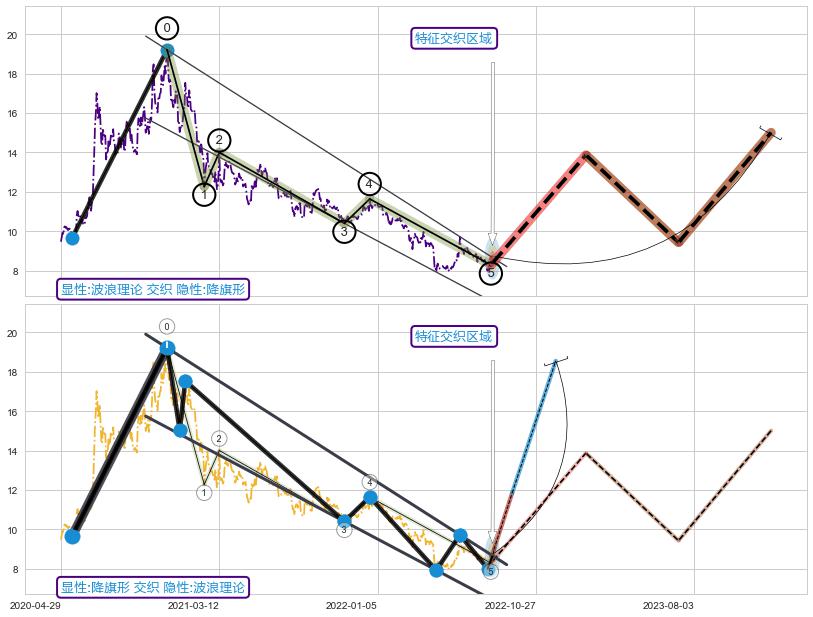 ➢ 波浪理论与降旗形信号事件周期长度级别相同,同周期信号事件