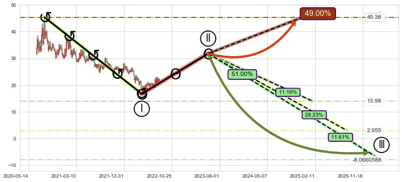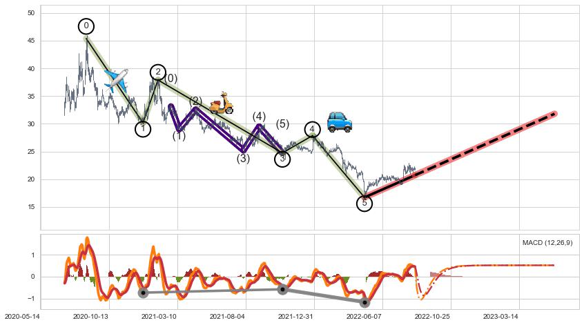 ➣ 波浪理论:猜想止跌 → 上涨 →【拐点】浪5已完成 → 大趋势均值回复