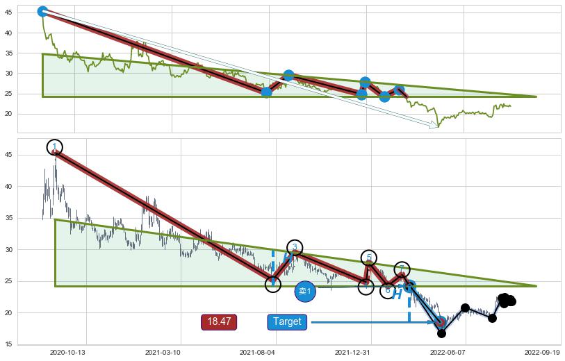 ➢ 【已达成】最小【整理】第一目标价格→(2022-04-25: 18.47 ), 后续继续【整理】下跌动力依然存在,下跌空间适中