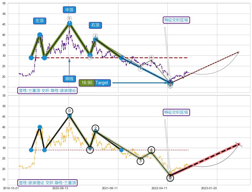 ➢ 波浪理论下跌浪:浪5反弹拐点 🔜 三重顶target支撑拐点上涨 综合量化分数:53.46 【中性】