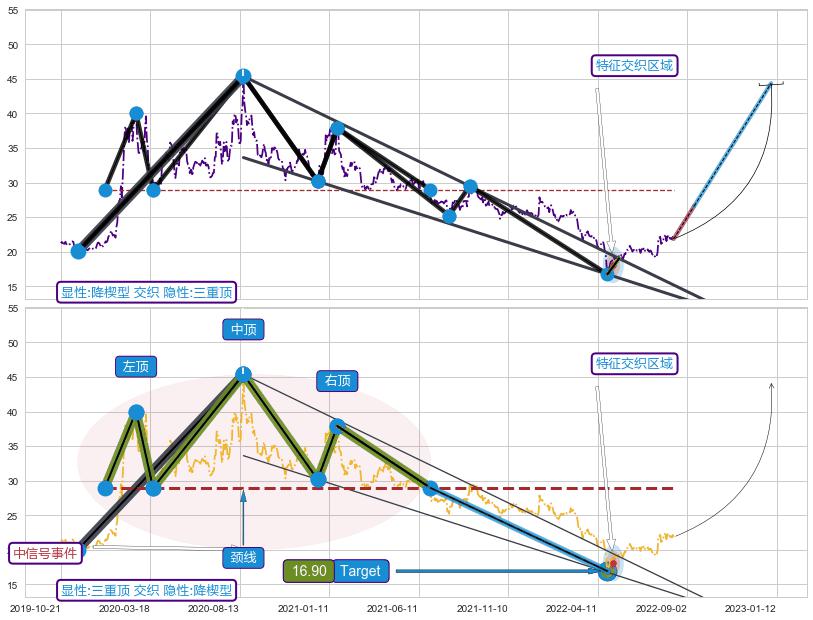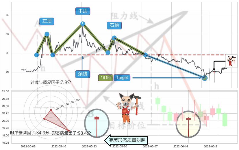 ➢ 三重顶:下跌目标target已达成:猜想强支撑位临近,预期反弹上涨(均值回复)