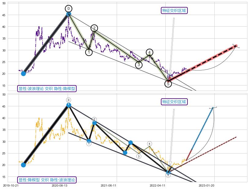 ➢ 波浪理论与降楔型信号事件周期长度级别相同,同周期信号事件