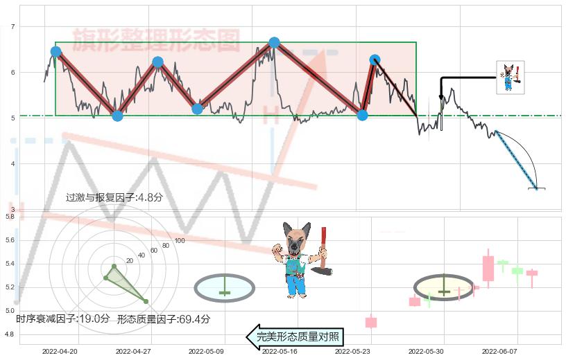 ➢ 【卖1】: 激进型 卖点→(2022-04-21: 5.05 )形成突破下跌矩形整理【整理】形态