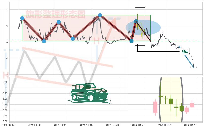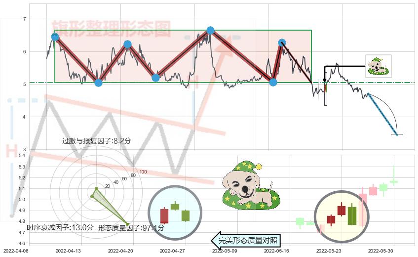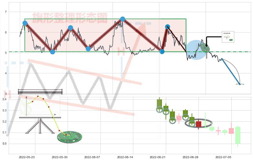 ➢ 【多方力量耗尽】已在2022-04-21突破矩形提供的【支撑】颈线 5.05 →箱形震荡盘整结束
