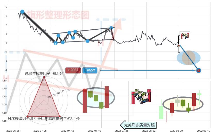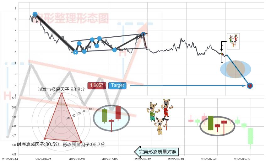 ♘ 阻力价格位6.10,可信任强度83.46%,距离最后交易2022-08-12形成的收盘价格4.71相差 +29.42%