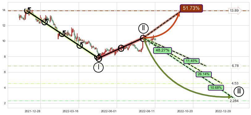 ♘ 阻力价格位13.53,可信任强度53.79%,距离最后交易2022-08-12形成的收盘价格10.16相差 +33.16%