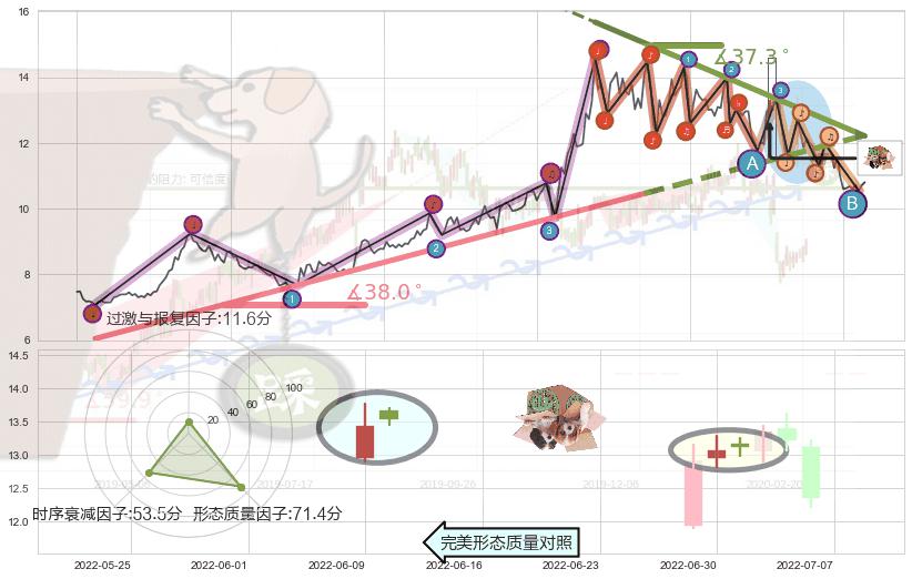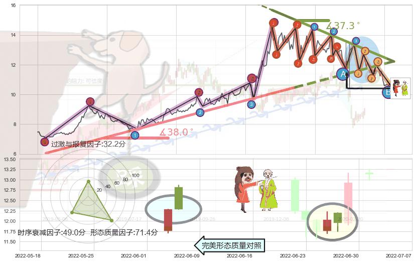 ➢ 🕰 价格走势在2022-06-30至2022-07-01期间形成顶部尽头线(下山虎),残存影响值:-2.28