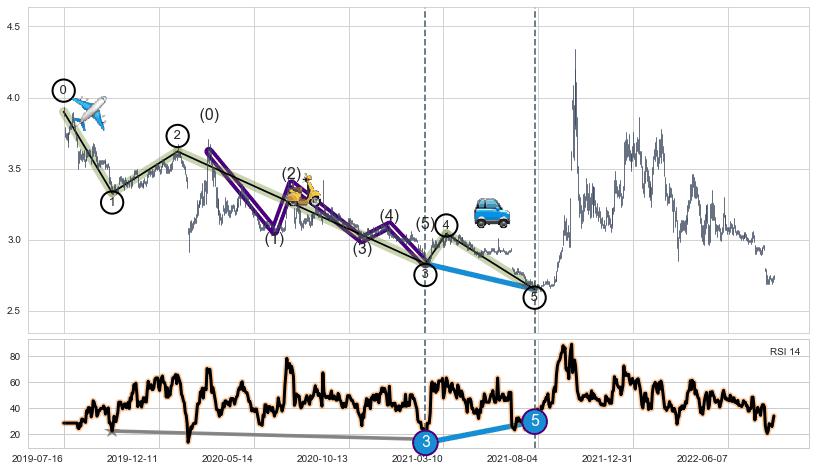 ➢ 第三,五驱动浪端点:【RSI】走势出现【常规背离 & 反转信号】背离程度99.00%,背离夹角角度45.3˚,背离程度较大