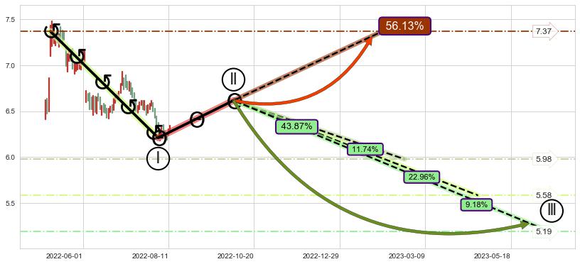 ➣ AI预测: 假定反转启动后, 第❸目标位置(2023-05-17, 7.37)