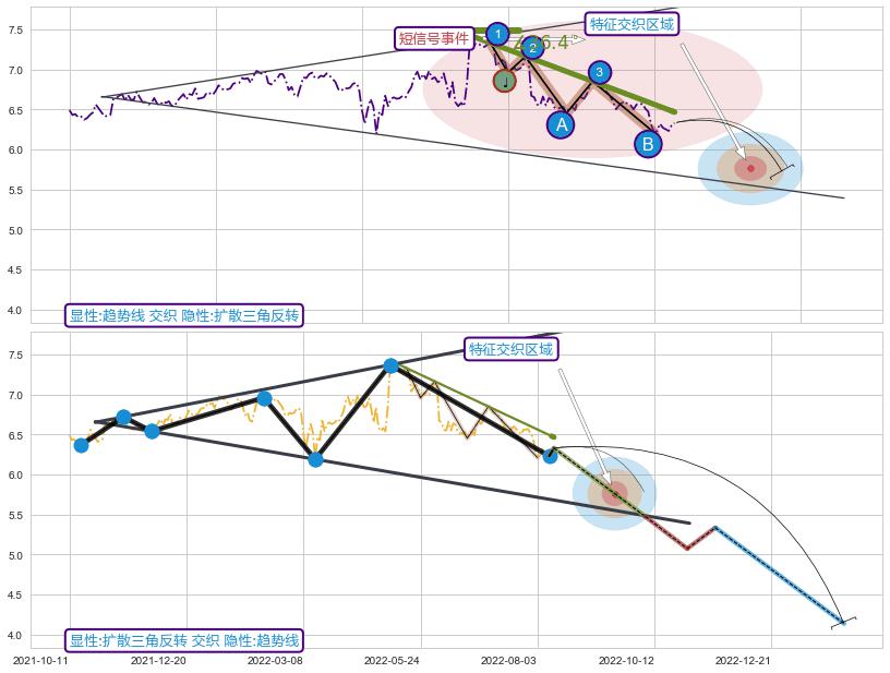 ➢ 趋势线属【短级别信号事件】扩散三角反转属【长级别信号事件】长短周期组合信号事件, 短长事件长度比34.98%