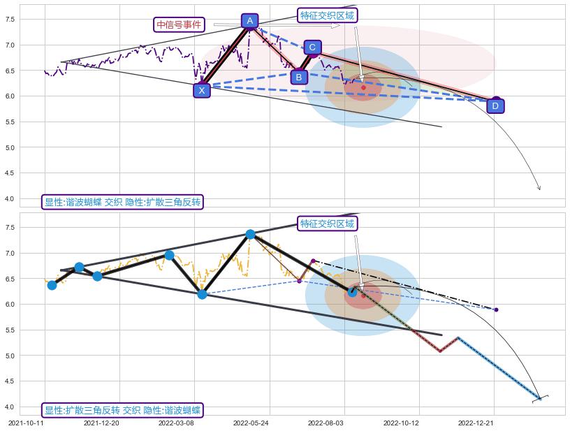 ➣ 未完成【蝴蝶】形态起点X: 2022-03-15, 已到达C点: 2022-07-05, 预测最终D点: 2022-12-22, 共190交易日