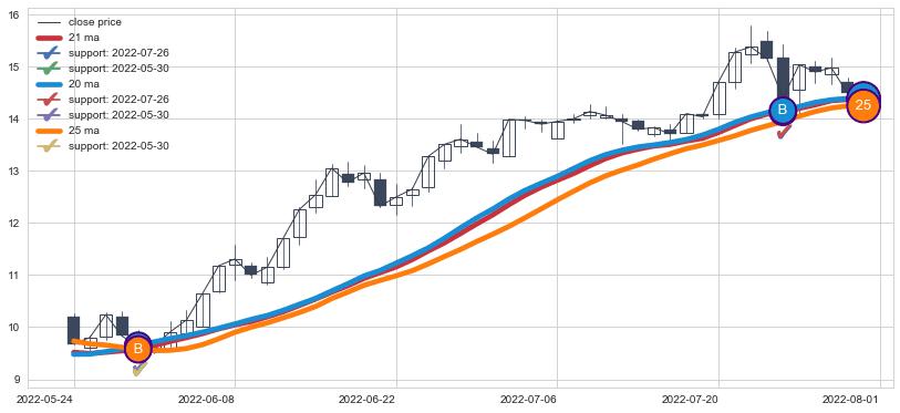 ➣ 21小时均线于(2022-05-13: 9.80)形成【金叉】基于【金叉历史模型】预测金叉后最高波峰价格: 10.83, 金叉后最高价格15.38,已经上涨超出预测最高波峰价格, 预期回调