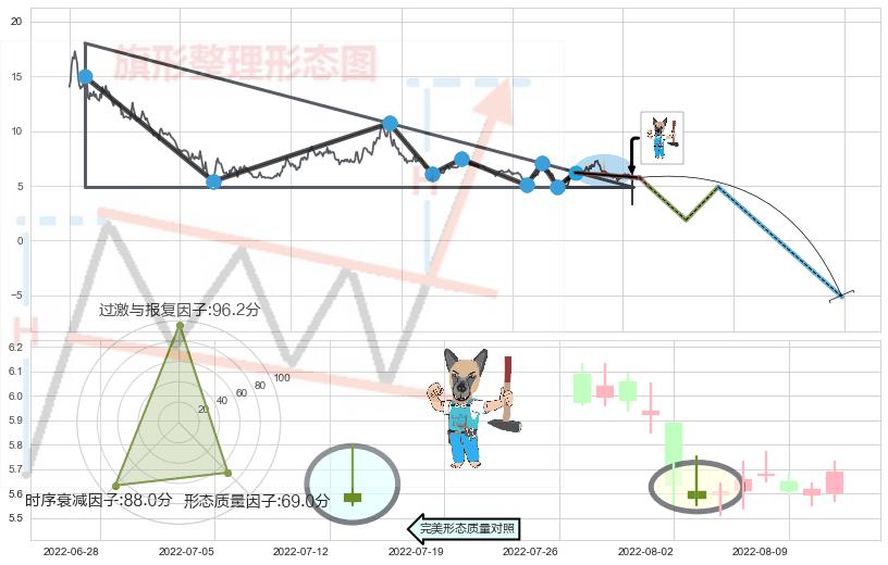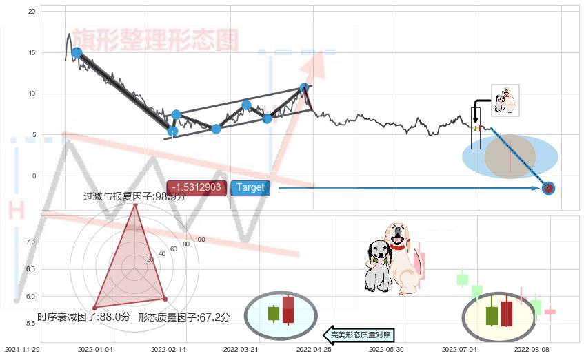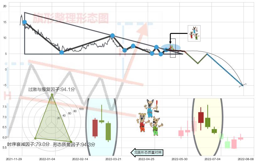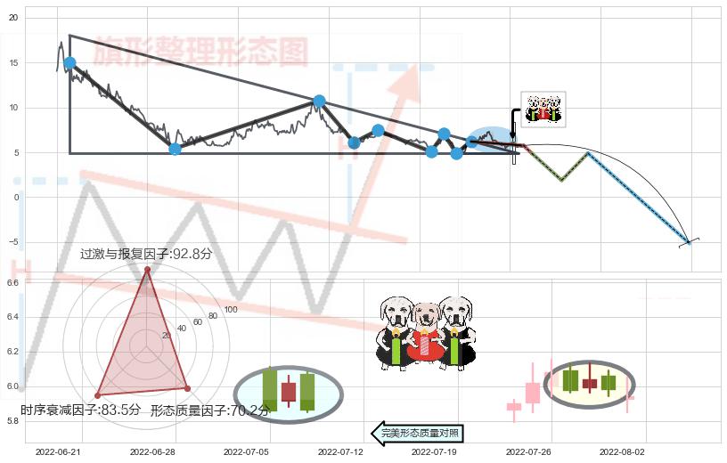 ➢ 🕰 价格走势在2022-08-05至2022-08-08期间形成顶部尽头线(下山虎),残存影响值:-5.27