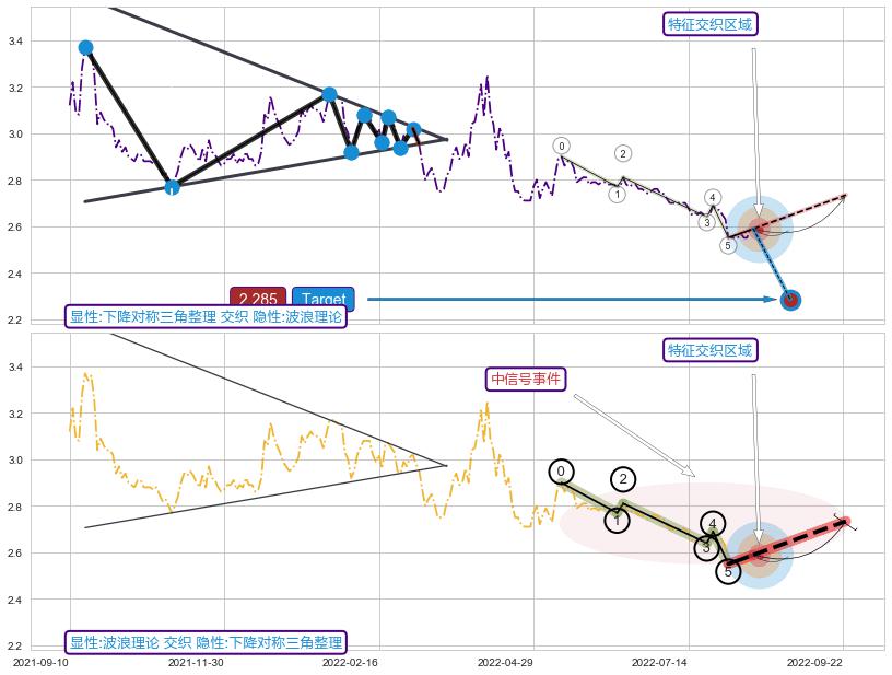 ➢ 【卖1】: 激进型 卖点→(2022-03-07: 2.954 )形成突破下降【对称】三角形整理【整理】形态