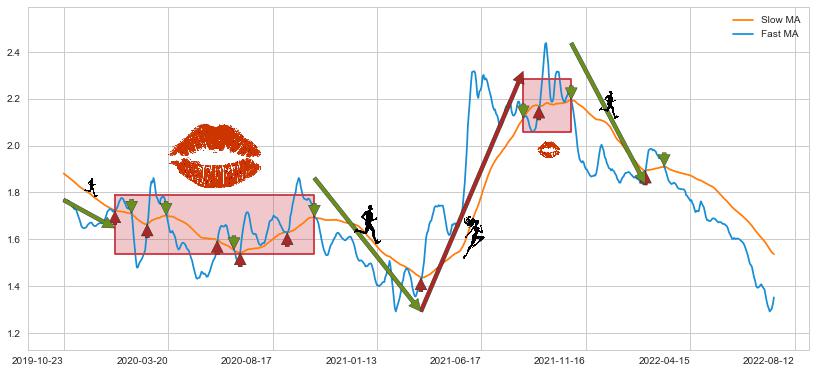 2021-10-27至2022-02-11 慢线与快线呈空头排列, 慢线与快线接触少,无缠绕
