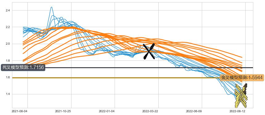 ➣ 60小时均线于(2022-03-07: 1.9043)形成【死叉】基于【死叉历史模型】预测死叉后最低波谷价格: 1.7122, 死叉后最低价格1.2800,已经下跌超出预测最低波谷价格, 预期反弹