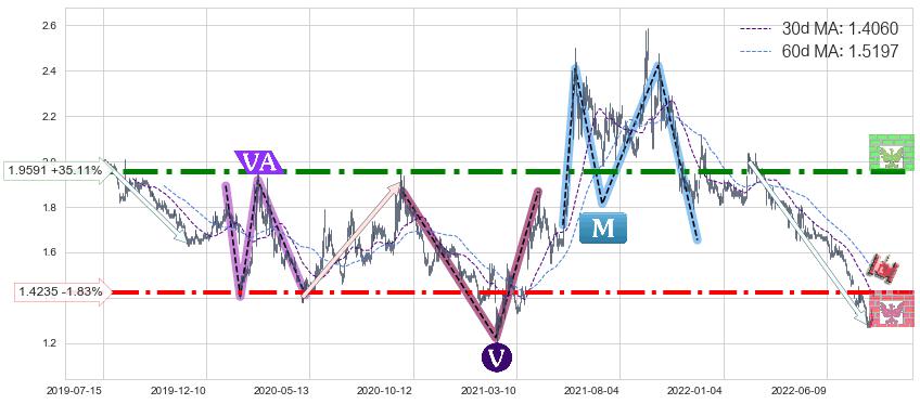 ♘ 阻力价格位1.9591,可信任强度94.42%,距离最后交易2022-08-12形成的收盘价格1.4500相差 +35.11%
