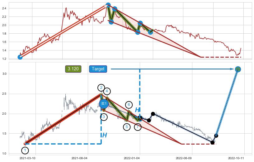 ➢ 【买1】: 激进型 买点 →(2022-01-04: 1.8796 )形成突破降🚩楔型【整理】形态