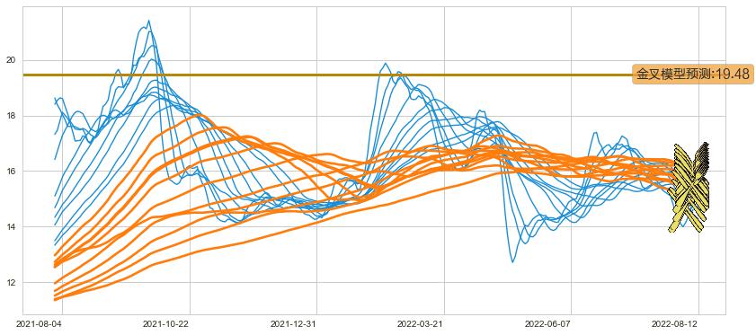 ➢ 70小时均线于(2022-08-11: 15.35)形成【金叉】基于【金叉历史模型】预测金叉后最高波峰价格: 20.37, 金叉后最高价格16.84,尚未达到预测最高波峰价格, 预期继续上涨