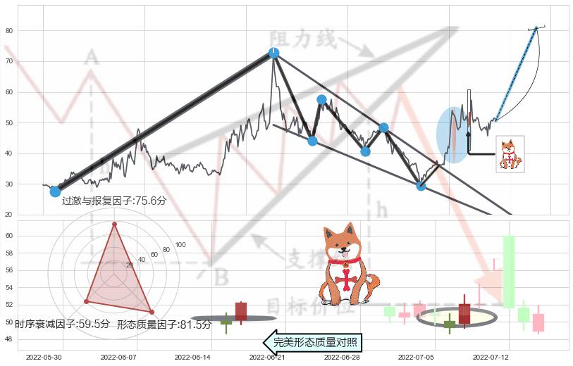 ➢ 曙光初现形态 🔜 降楔型阻力突破转换支撑上涨 综合量化分数:52.96 【中性】