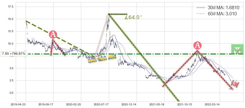 ♘ 阻力价格位7.89,可信任强度62.96%,距离最后交易2022-06-07形成的收盘价格0.8900相差 +786.87%