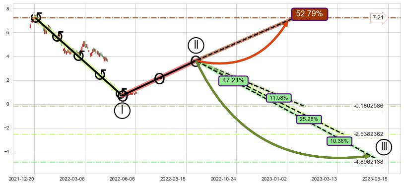 ➣ 循环浪继续向下【平均值】位置(2023-03-21, -2.5382362),匹配聚类样本比例53.54%, 可能性概率25.28%