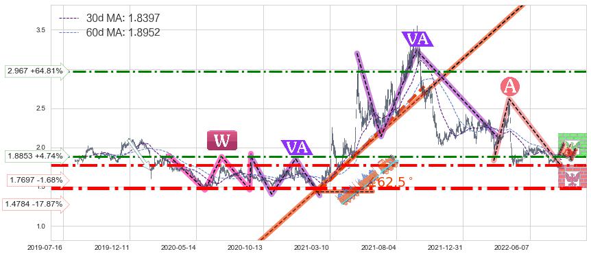 ♘ 阻力价格位2.967,可信任强度56.76%,距离最后交易2022-08-12形成的收盘价格1.8000相差 +64.81%