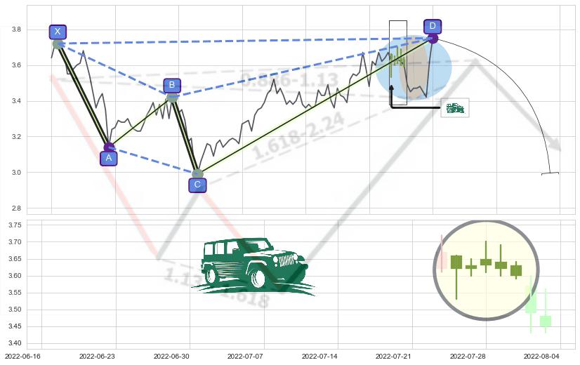 ➣ 已完成【鲨鱼】形态起点X: 2022-02-21, 终点D: 2022-08-12, 共119交易日