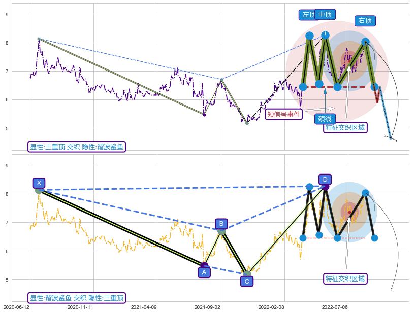 ➢ 三重顶属【短级别信号事件】谐波鲨鱼属【长级别信号事件】长短周期组合信号事件, 短长事件长度比22.84%