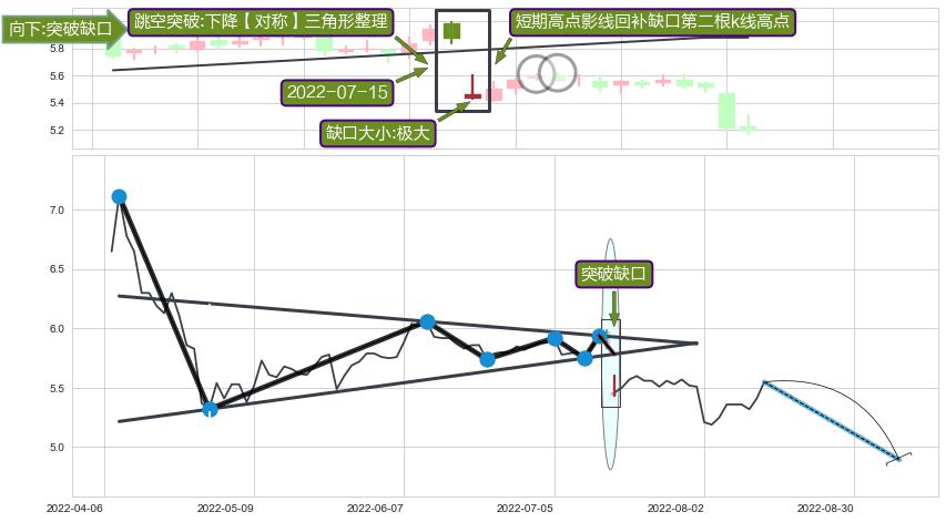➢ 【卖1】: 激进型 卖点→(2022-07-15: 5.78 )形成突破下降【对称】三角形整理【整理】形态