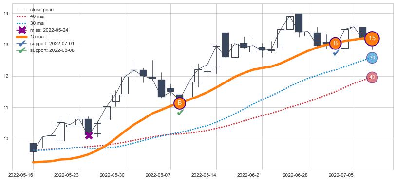 ➣ 40小时均线于(2022-07-18: 12.36)形成【死叉】基于【死叉历史模型】预测死叉后最低波谷价格: 11.71, 死叉后最低价格11.89,尚未达到预测最低波谷价格, 预期继续下跌