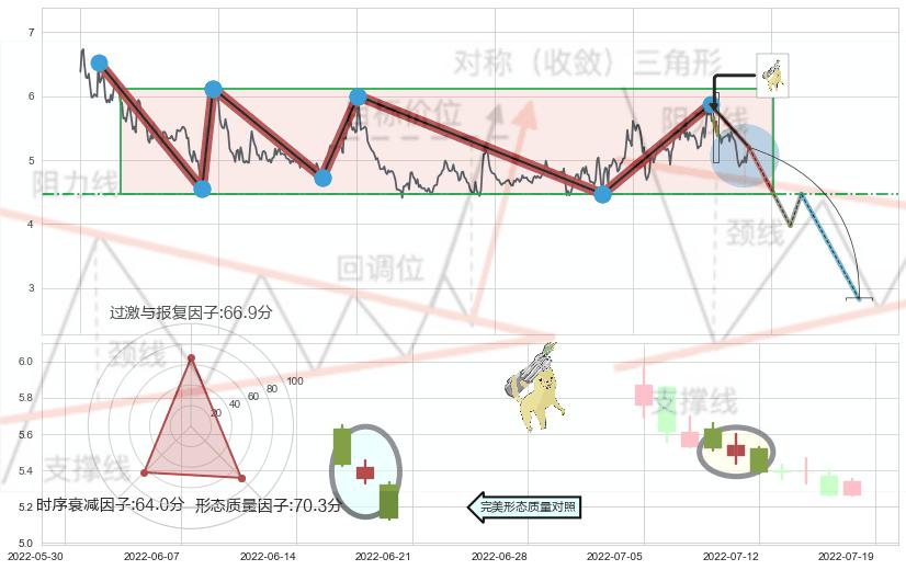 ➢ AI智能: 预测【多方力量耗尽】,矩形中继整理向下突破,预测将在2022-09-07突破矩形提供的颈线