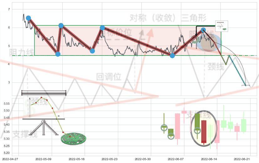 ♘ 阻力价格位6.08,可信任强度70.02%,距离最后交易2022-08-12形成的收盘价格5.20相差 +16.93%