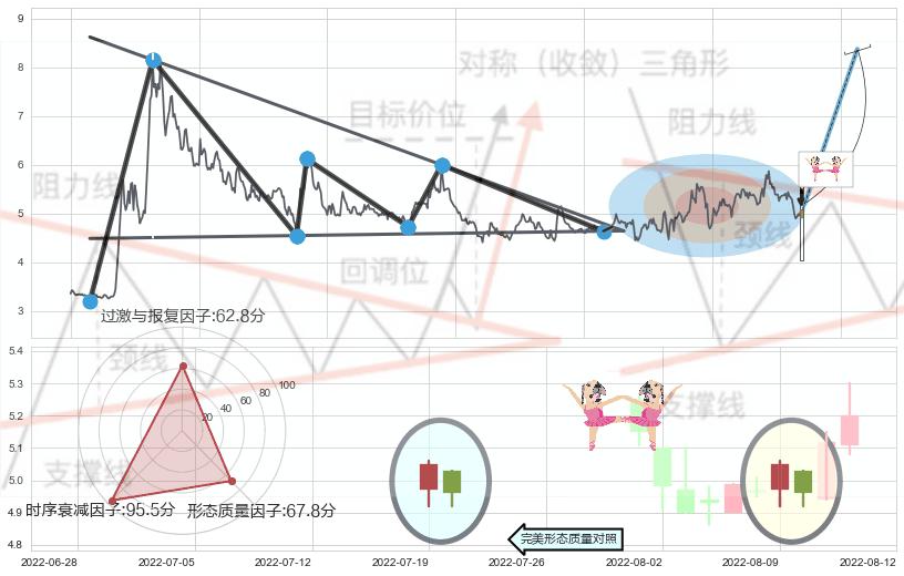 ➢ 曙光初现形态 🔜 上升对称三角整理阻力突破转换支撑上涨 综合量化分数:55.27 【偏多】