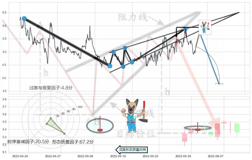 ➢ 🕰 价格走势在2022-06-10至2022-06-10期间形成下降插入线(坠落线),残存影响值:-1.87