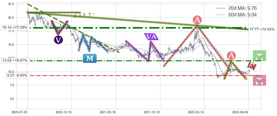 ♘ 支撑价格位9.27,可信任强度54.32%,距离最后交易2022-08-12形成的收盘价格10.18相差 -8.93%