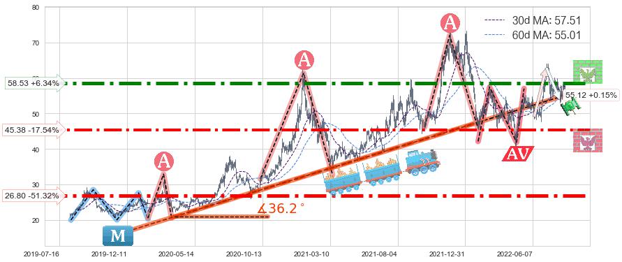 ♞ 30日均线:57.51,60日均线:55.01→ 快线>慢线