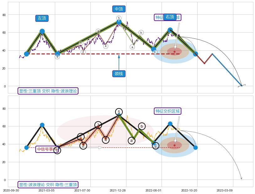➢ 波浪理论属【中级别信号事件】三重顶属【长级别信号事件】中长周期组合信号事件,中长事件长度比61.59%