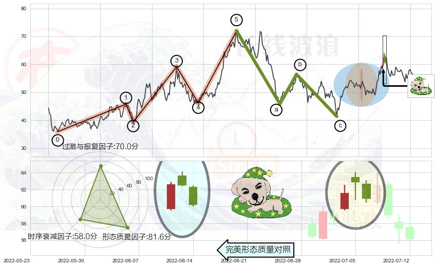 ➢ 看跌(高位倒锤头)流星线 🔜 波浪理论击穿破位C点继续下跌 综合量化分数:47.33 【中性】