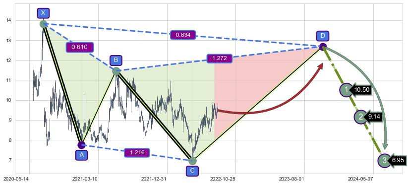 ➣ D点拟合预测价格12.69,距离最后交易收盘价格9.48相差 +33.83%