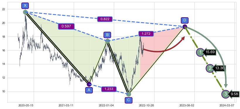 ➣ 未完成【赛福】形态起点X: 2020-03-12, 已到达C点: 2022-04-26, 预测最终D点: 2023-05-26, 共778交易日
